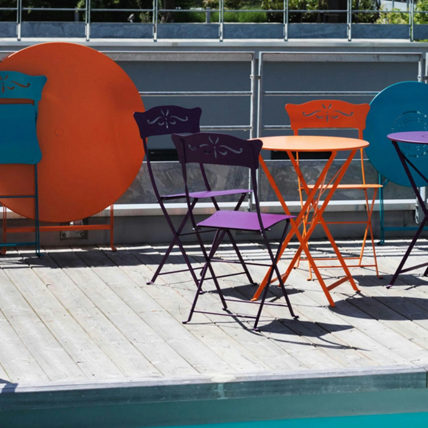 Bistro table from Fermob. A neat and simple table made of painted steel with a UV-resistant surface that will not fade in the sun. The table is ideal on the balcony or patio at the door, perfect to sit and take your morning coffee at.